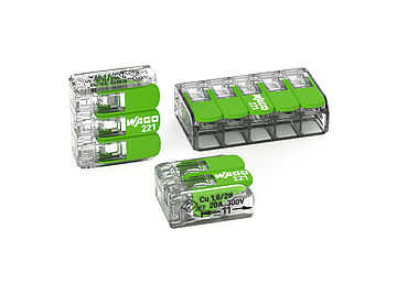 Für Anwender, die auch bei elektronischen Komponenten auf nachhaltige Lösungen setzen, bietet WAGO nun die Klemmenserie 221 als Green Range-Version aus recycelten Kunststoffen. Die Metallkomponenten bestehen zu einem hohen Anteil aus wiederverwendeten Materialien und die Verpackung besteht aus Graspapier.